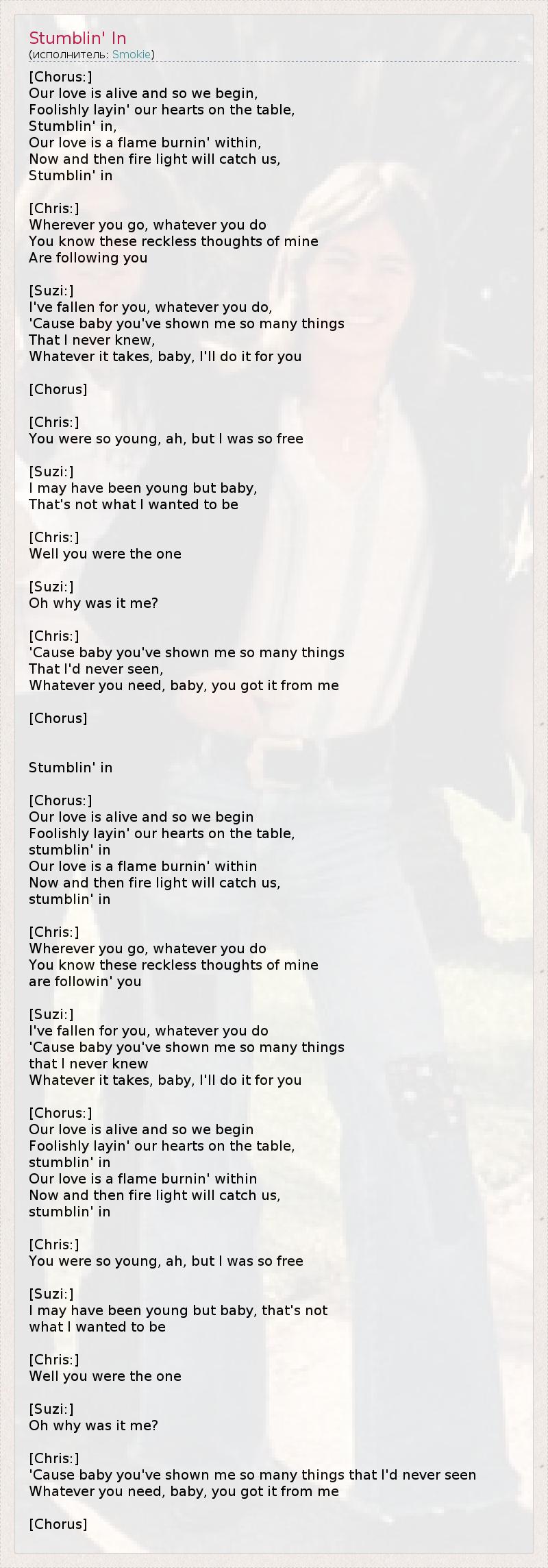 А как ты думаешь, о чем песня "Stumblin' In" ?