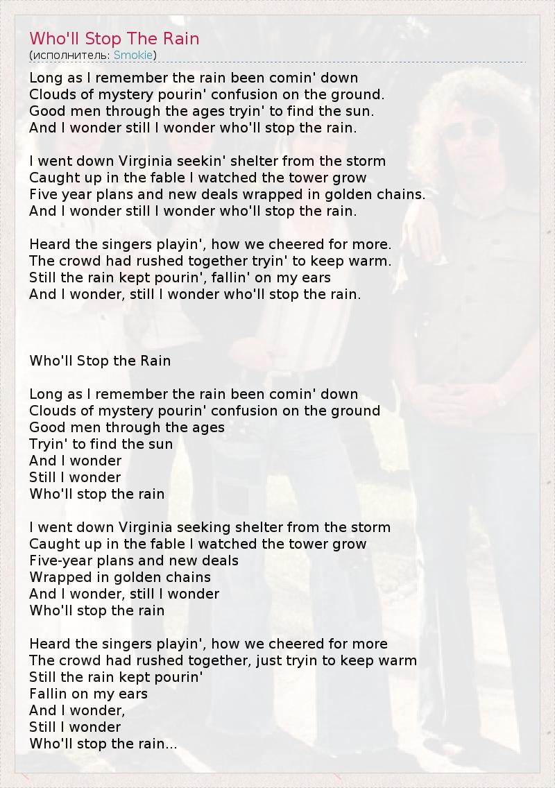 ГлавнаяИсполнителиSmokieWho'll Stop The Rain