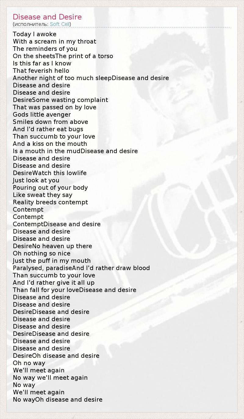 А как ты думаешь, о чем песня "Disease and Desire" ?