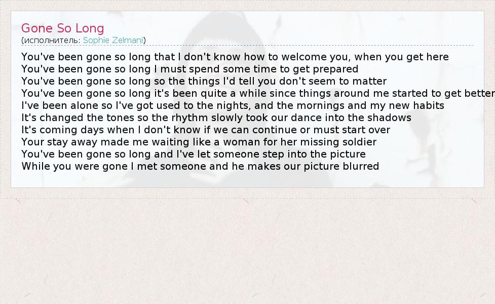 А как ты думаешь, о чем песня "Gone So Long" ?