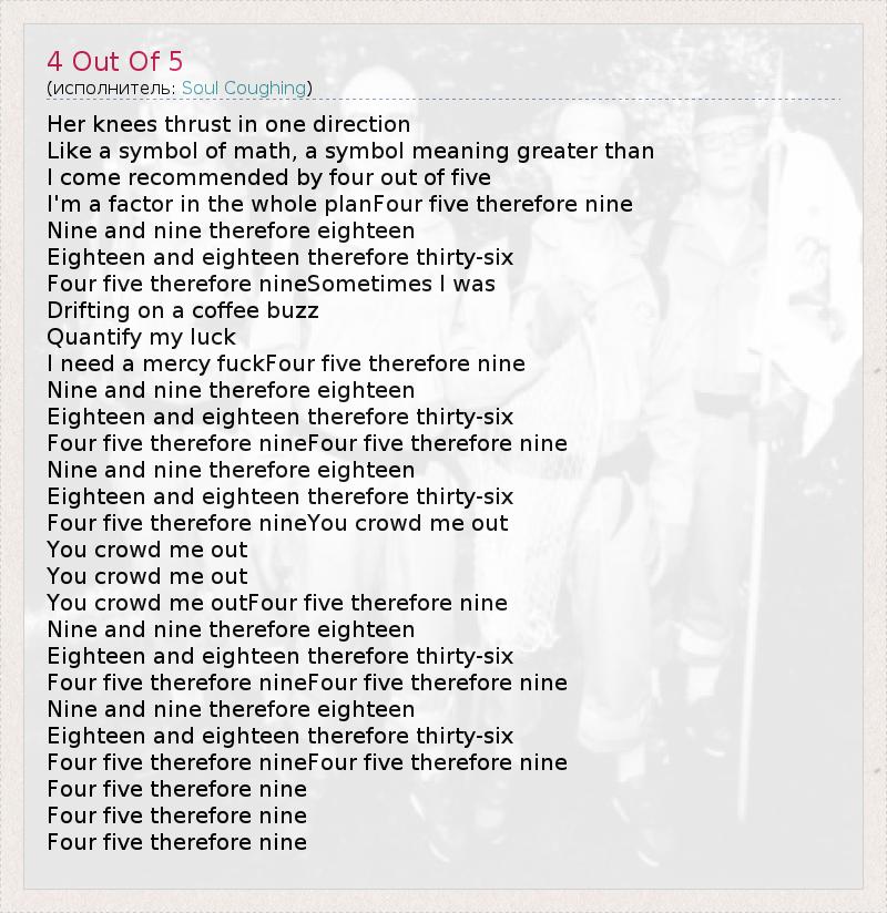 А как ты думаешь, о чем песня "4 Out Of 5" ?
