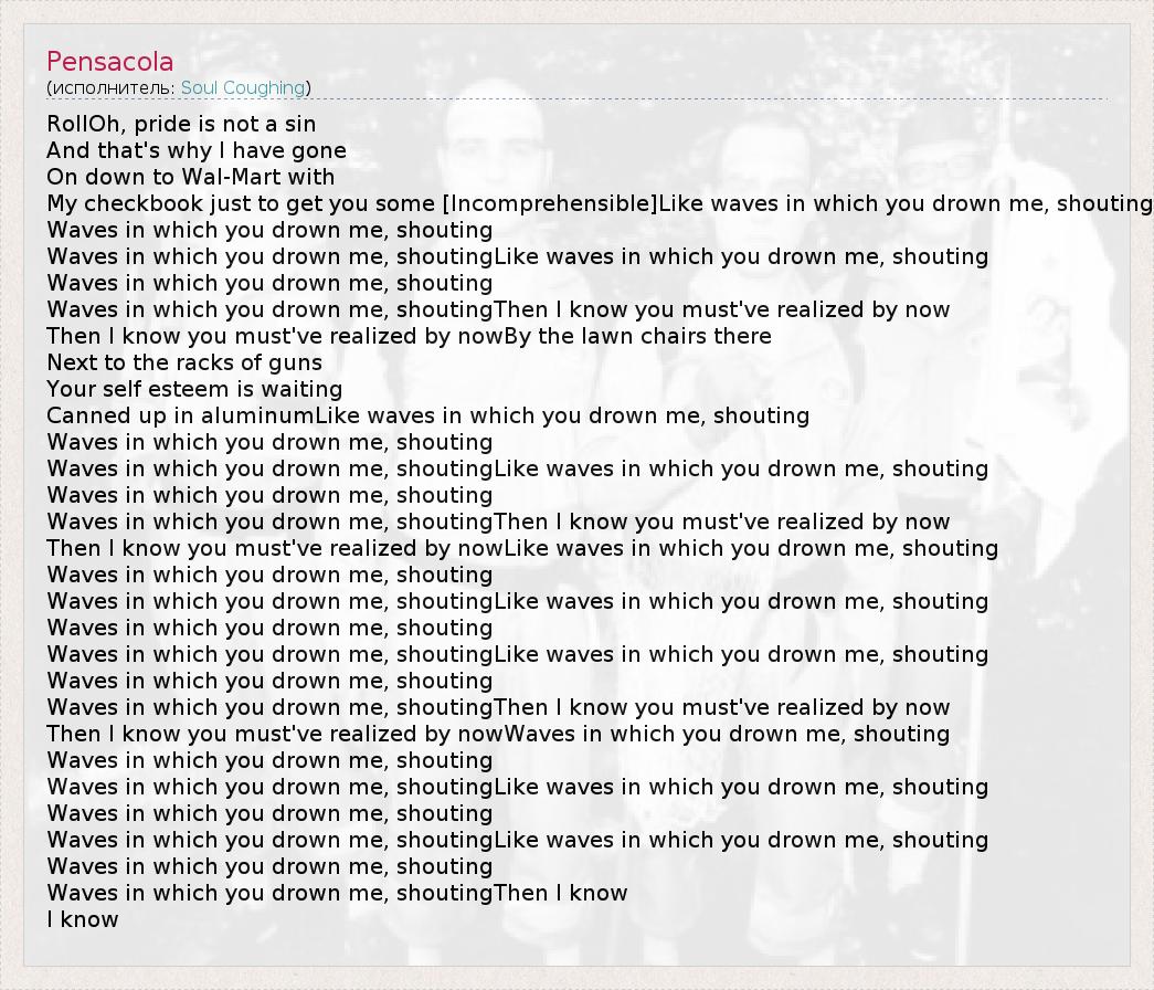 My checkbook just to get you some [Incomprehensible]Like waves in which you drown me, shouting