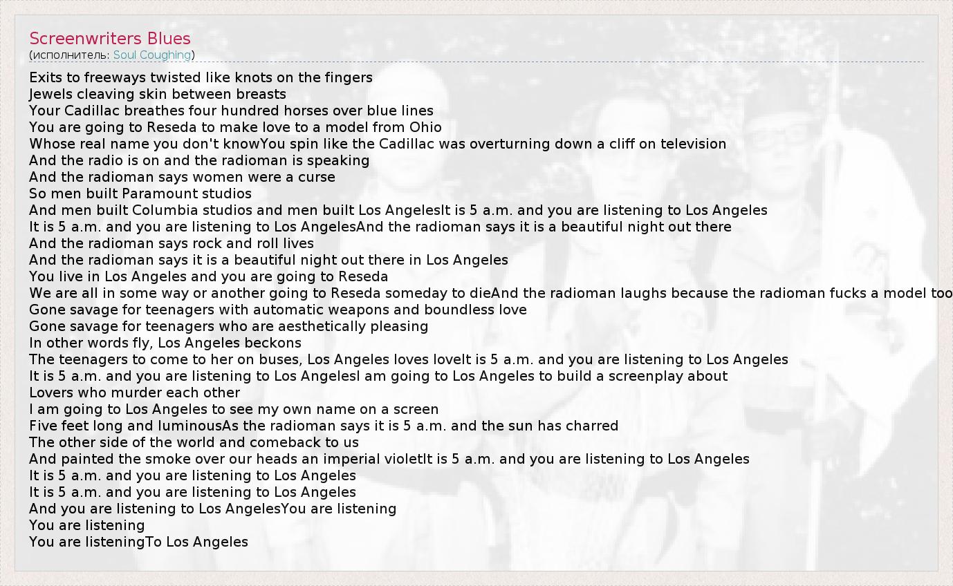 А как ты думаешь, о чем песня "Screenwriters Blues" ?
