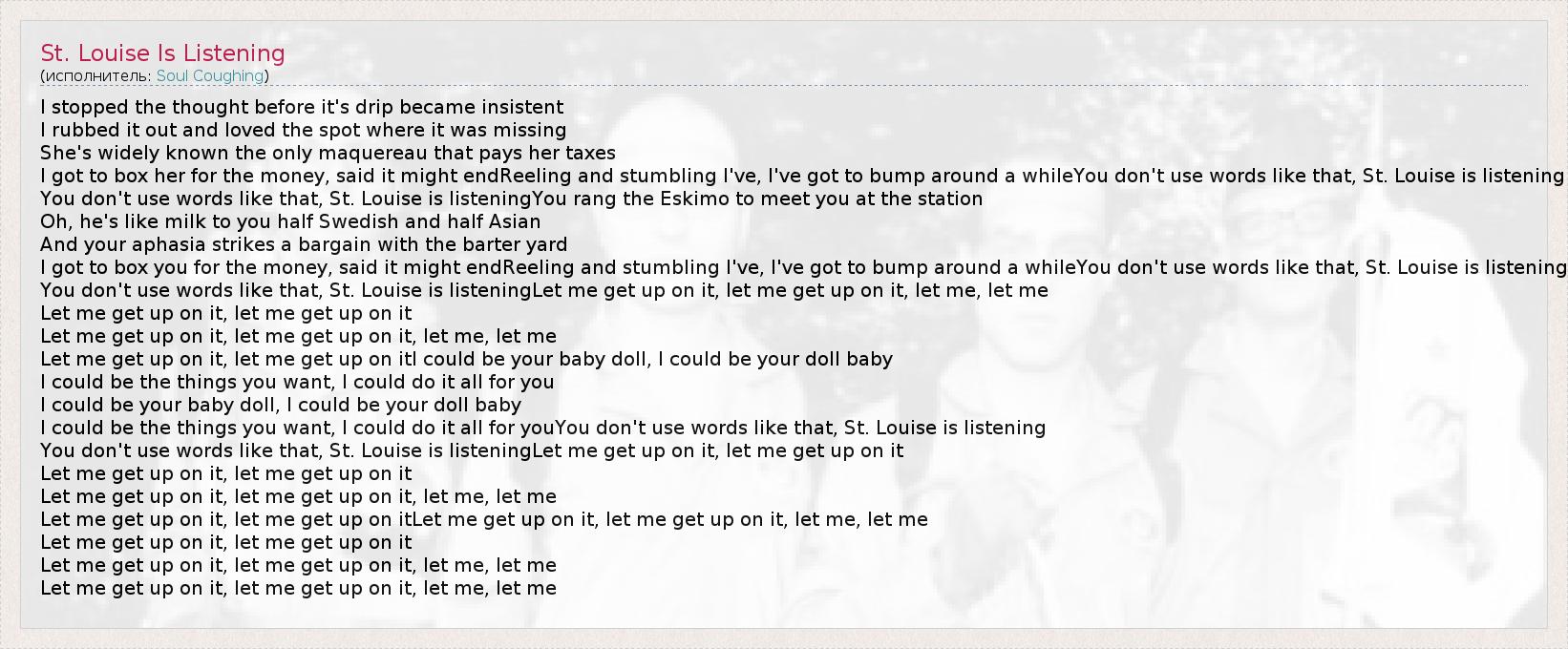 А как ты думаешь, о чем песня "St. Louise Is Listening" ?
