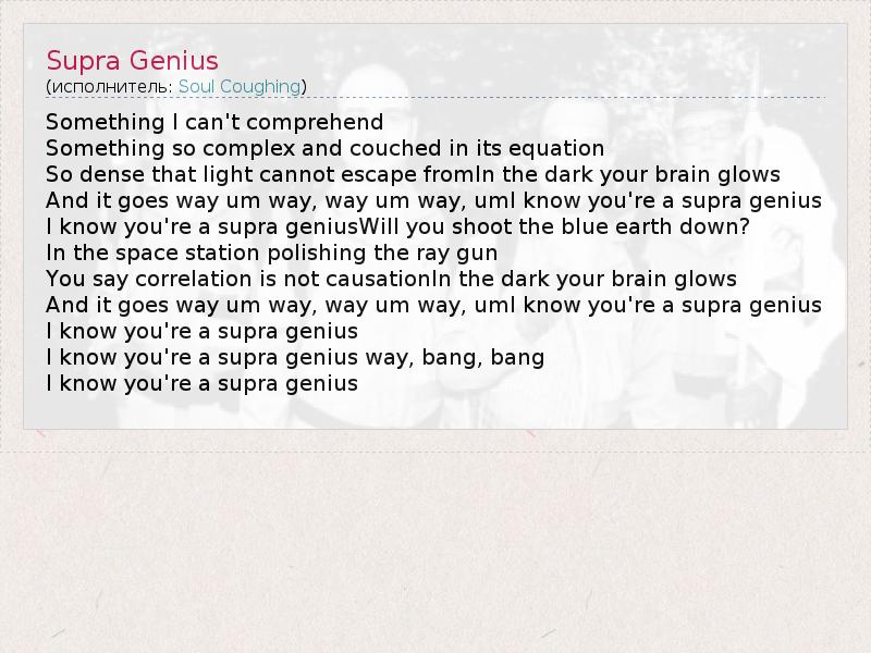 А как ты думаешь, о чем песня "Supra Genius" ?