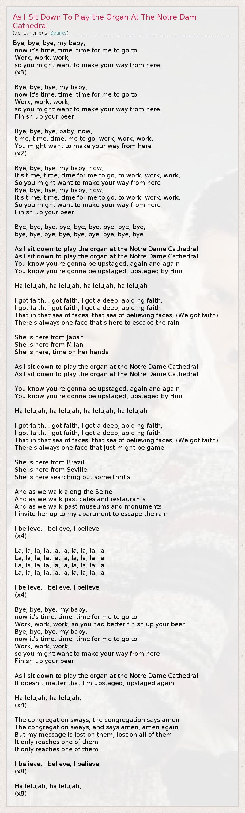 А как ты думаешь, о чем песня "As I Sit Down To Play the Organ At The Notre Dam Cathedral" ?