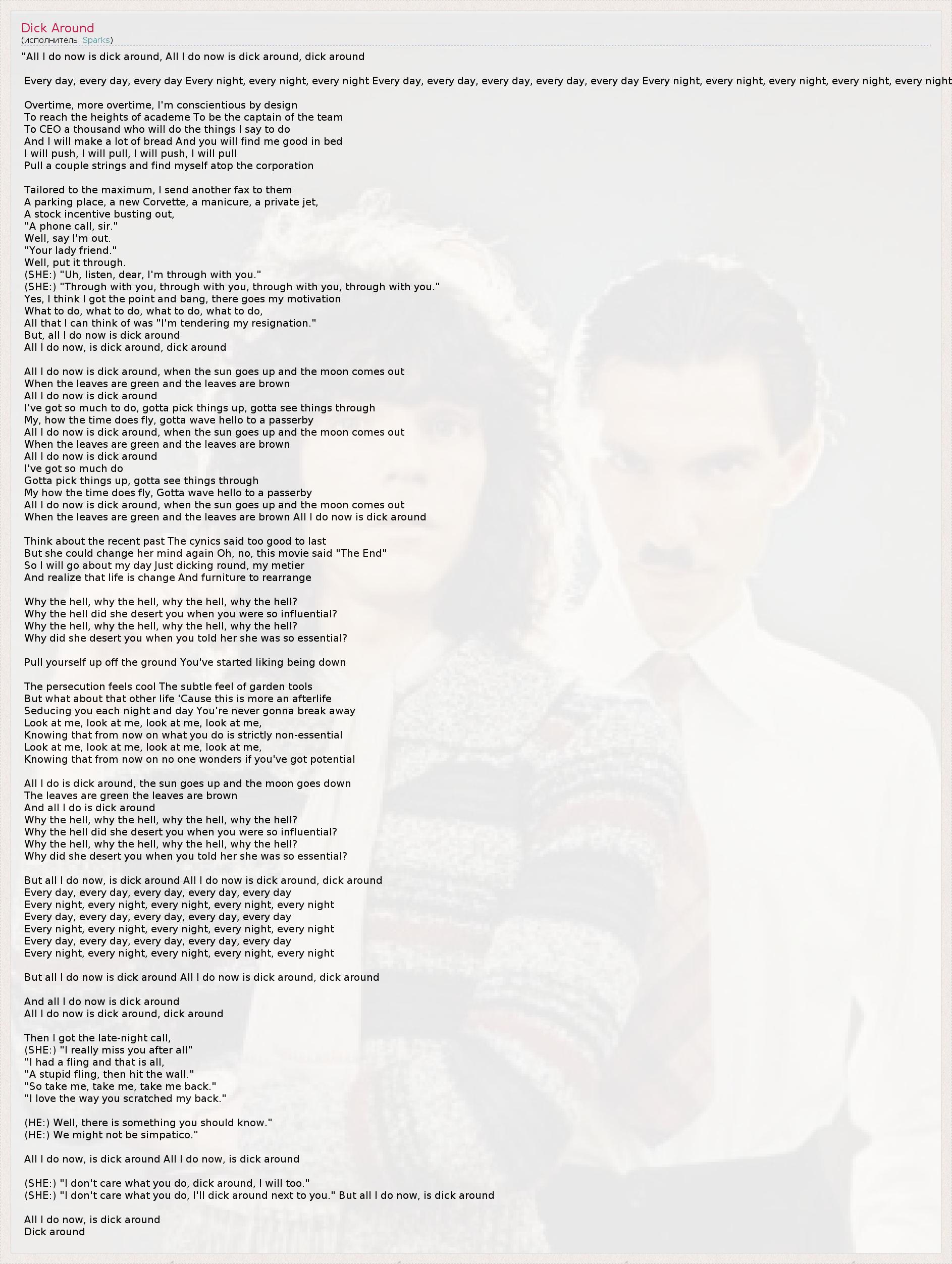 (SHE:) "I don't care what you do, I'll dick around next to you." But all I do now, is dick around