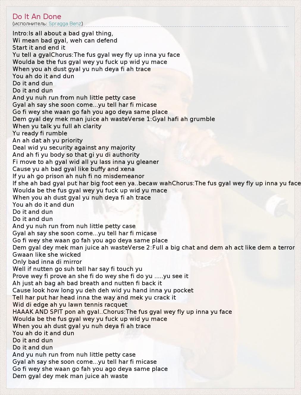 А как ты думаешь, о чем песня "Do It An Done" ?