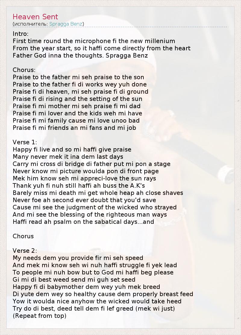 Father God inna the thoughts. Spragga Benz