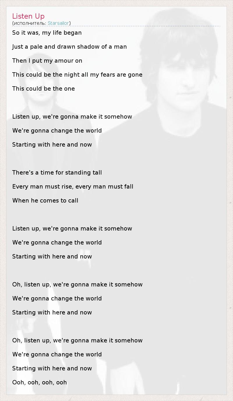 Это интересно:Starsailor (в переводе с англ. — «Звёздный странник») — английская рок-группа, основанная в Уиган, графство Большой Манчестер, Англия. На 2009-й год группа выпустила четыре студийных альбома. Двенадцать из тринадцати синглов попали в официальный хит-парад синглов Великобритании, также группа продала около 3 млн. копий своих записей. В ноябре 2009 года группа объявила о бессрочном отпуске, одновременно... продолжение