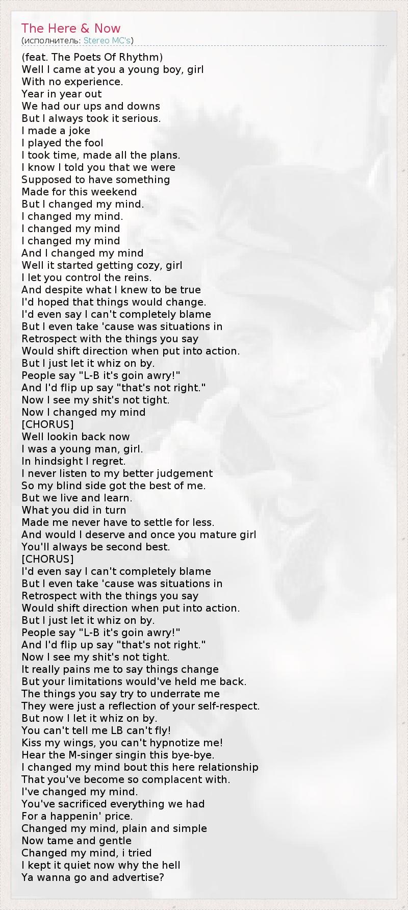 А как ты думаешь, о чем песня "The Here & Now" ?