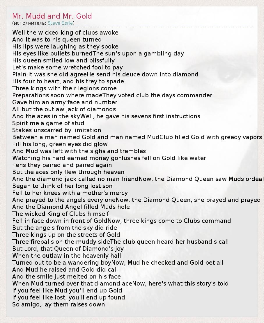 А как ты думаешь, о чем песня "Mr. Mudd and Mr. Gold" ?