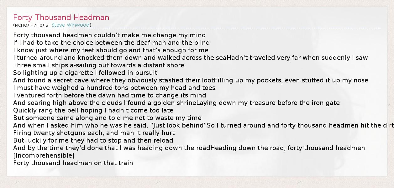 А как ты думаешь, о чем песня "Forty Thousand Headman" ?