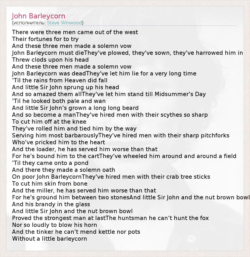 А как ты думаешь, о чем песня "John Barleycorn" ?