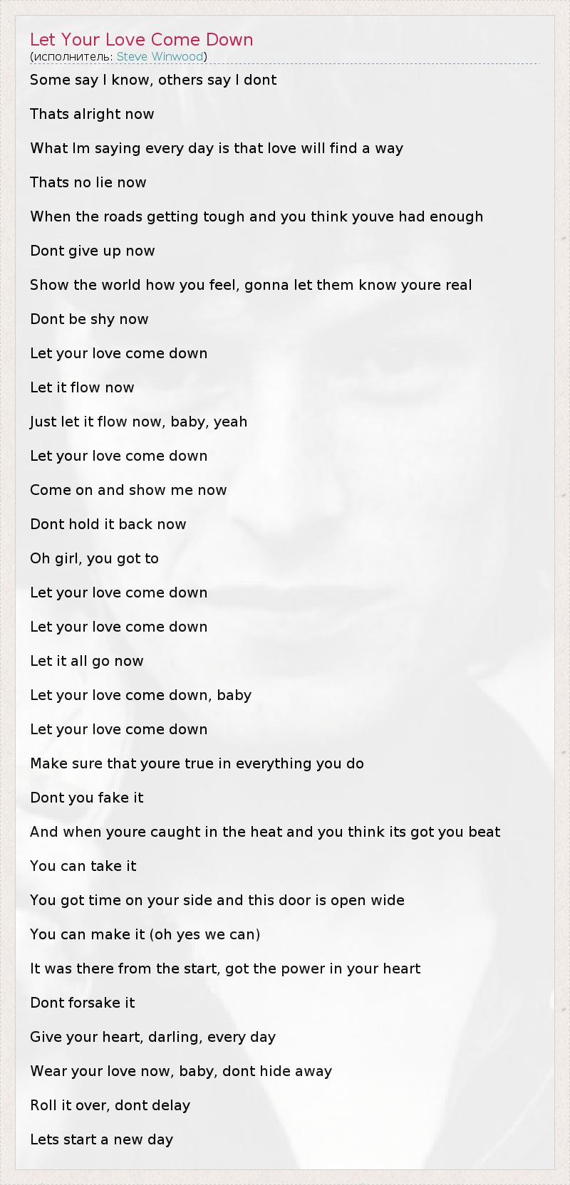 А как ты думаешь, о чем песня "Let Your Love Come Down" ?