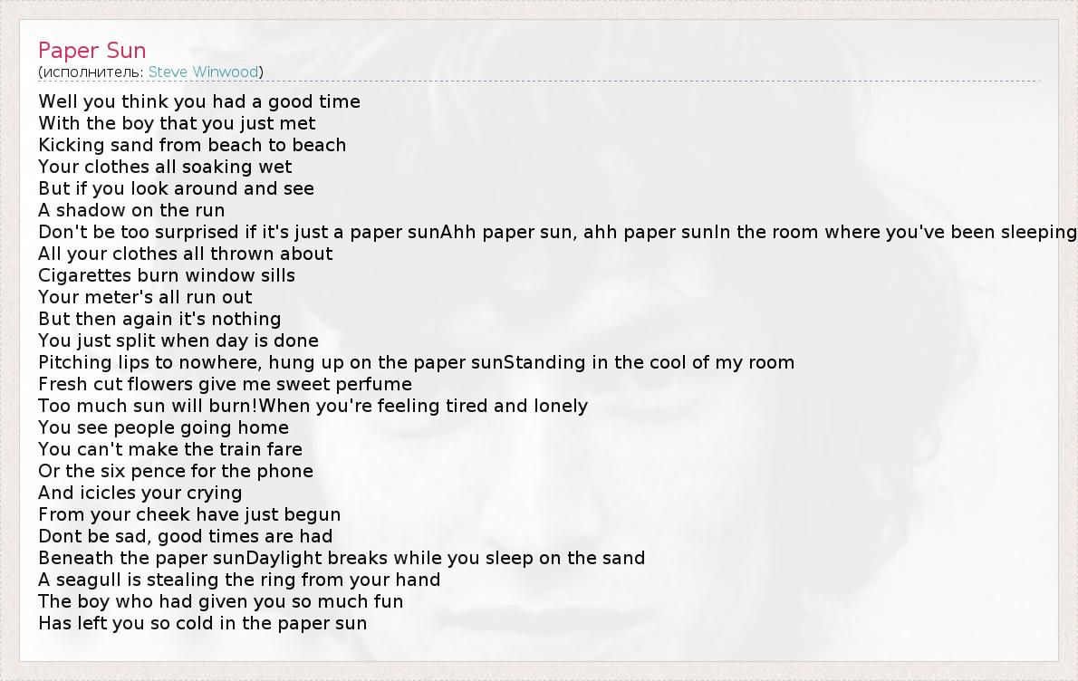 А как ты думаешь, о чем песня "Paper Sun" ?