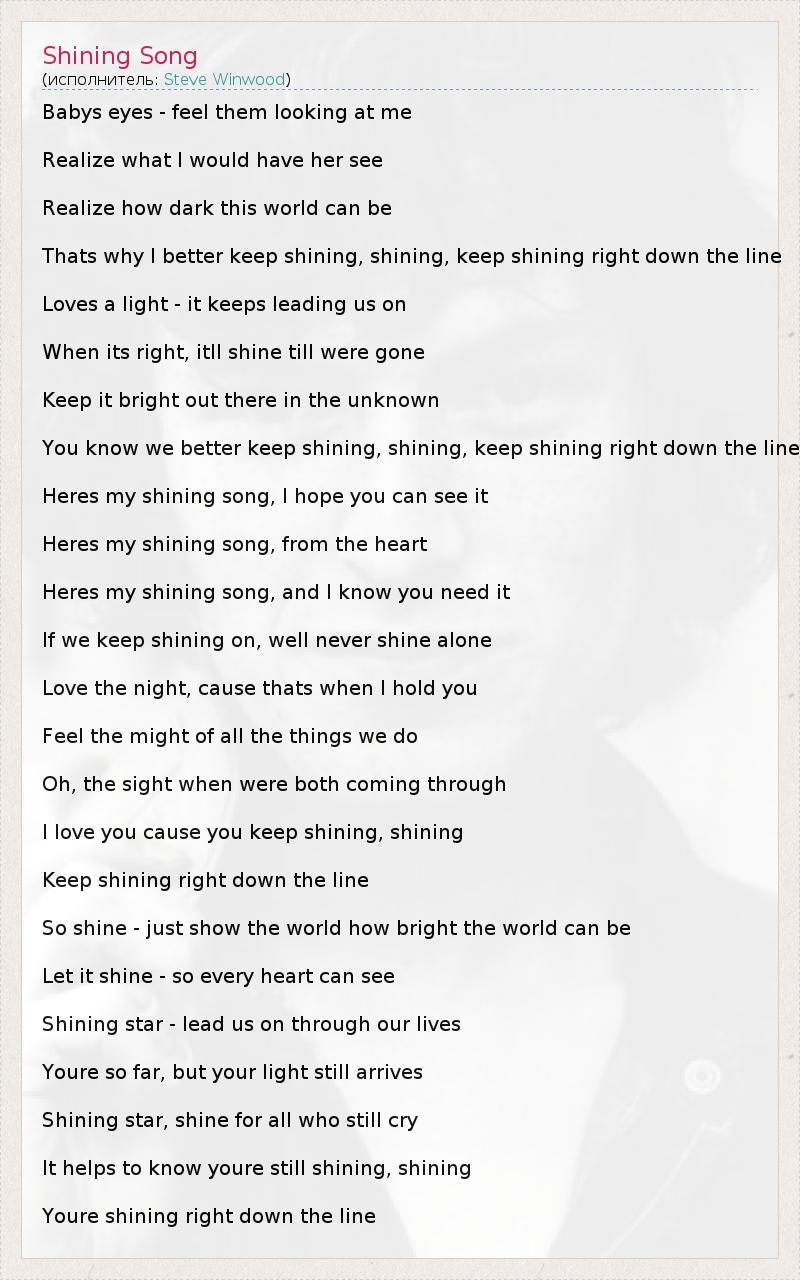 Это интересно:Стив Уинвуд (Steve Winwood, род. 12 мая 1948 года) — английский рок-музыкант, который сам пишет и исполняет песни и играет на многих инструментах. Помимо вполне успешной сольной карьеры, в молодости участвовал в рок-группах Spencer Davis Group, Traffic, Go и Blind Faith.Родом из Бирмингема, Уинвуд с детства аккомпанировал заезжим звездам ритм-энд-блюза — Би Би Кингу, Мадди Уотерсу, Джону Ли Хукеру, Бо Дидли, Чаку... продолжение