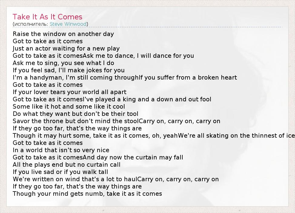 А как ты думаешь, о чем песня "Take It As It Comes" ?
