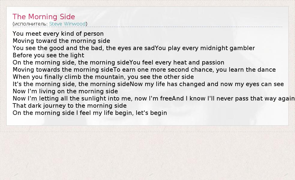 А как ты думаешь, о чем песня "The Morning Side" ?