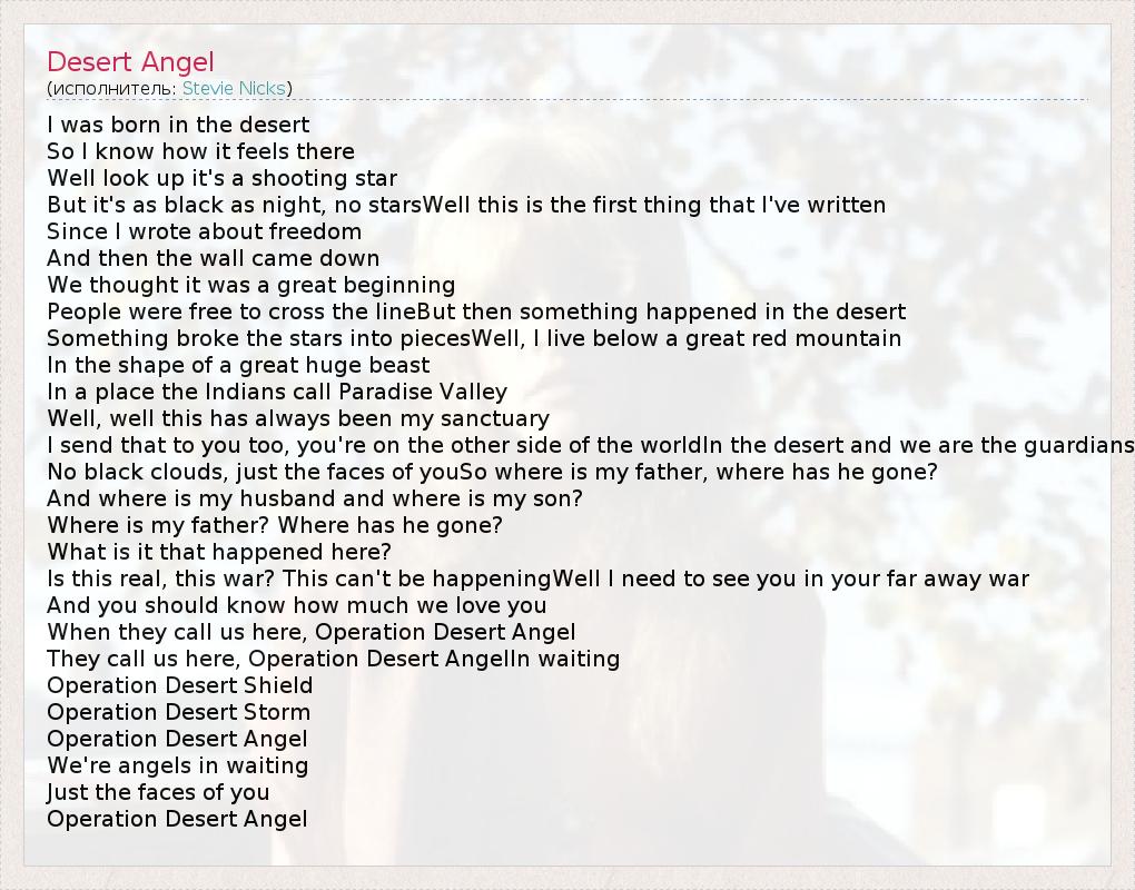 А как ты думаешь, о чем песня "Desert Angel" ?