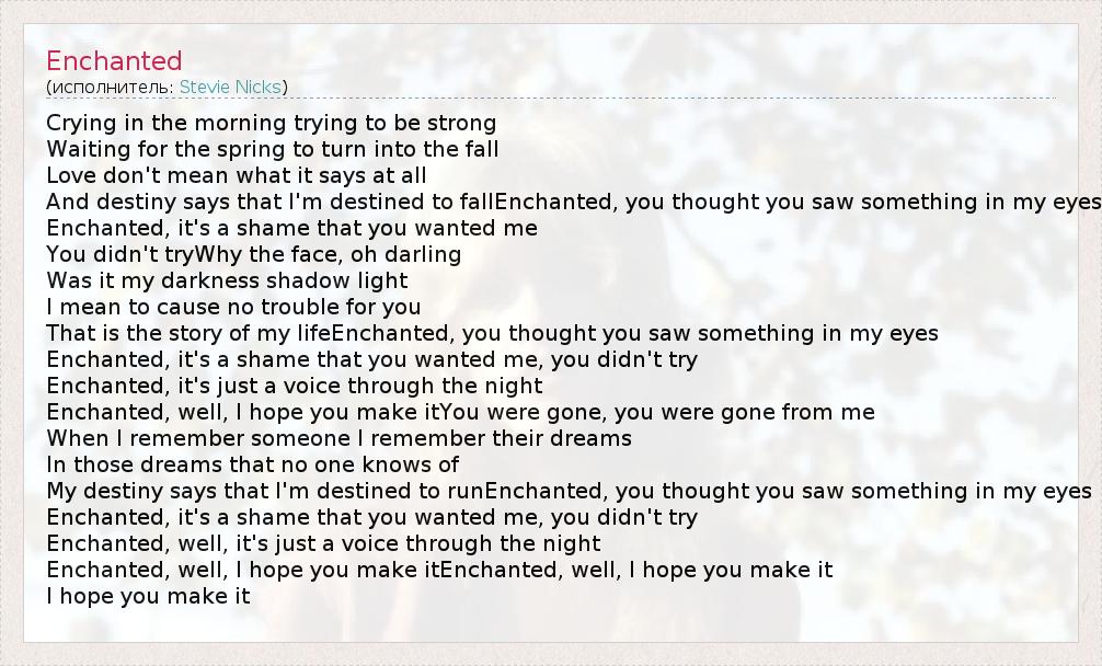А как ты думаешь, о чем песня "Enchanted" ?