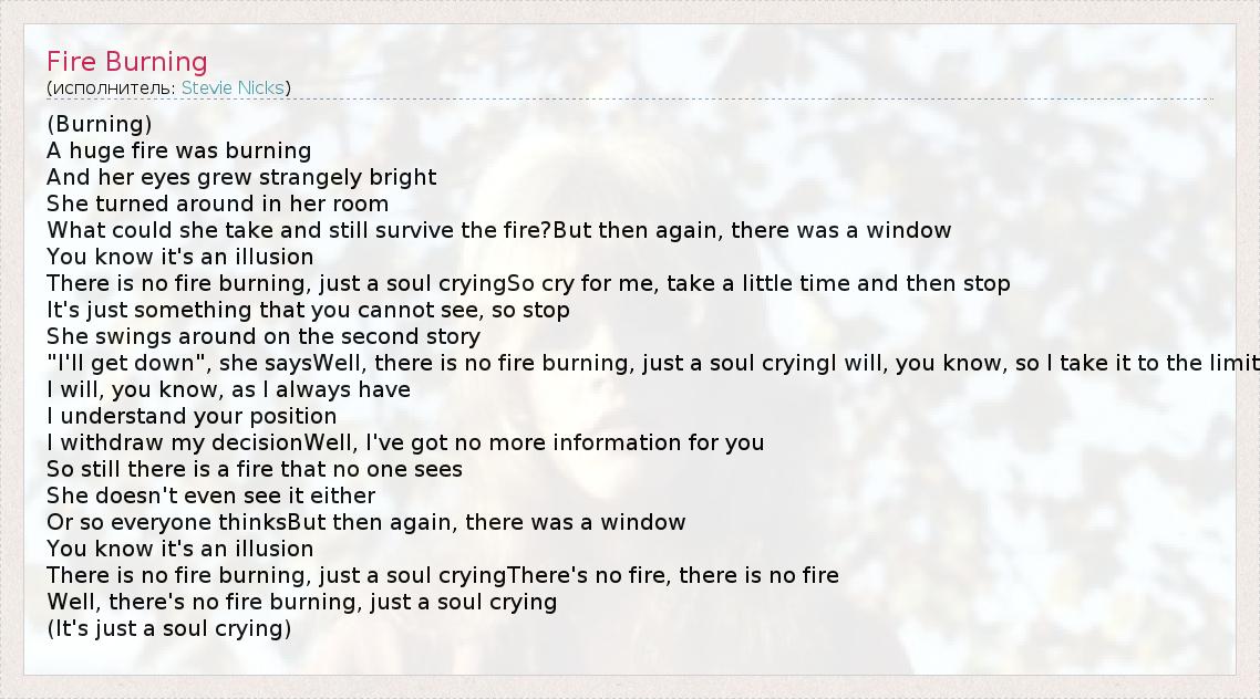 А как ты думаешь, о чем песня "Fire Burning" ?