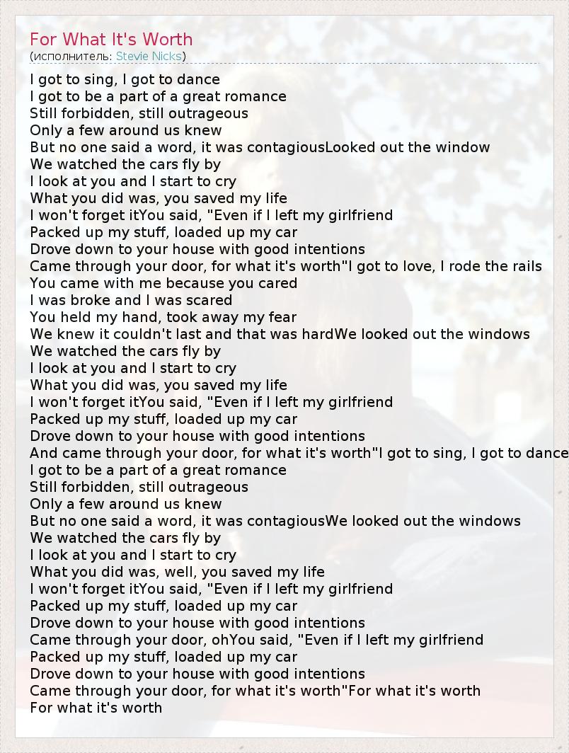 And came through your door, for what it's worth"I got to sing, I got to dance