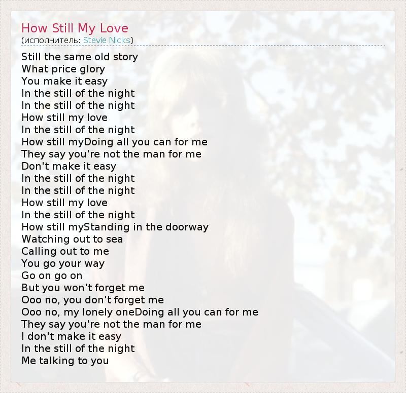 А как ты думаешь, о чем песня "How Still My Love" ?