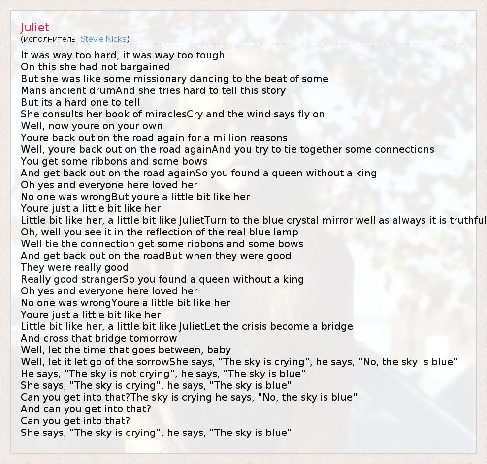 А как ты думаешь, о чем песня "Juliet" ?