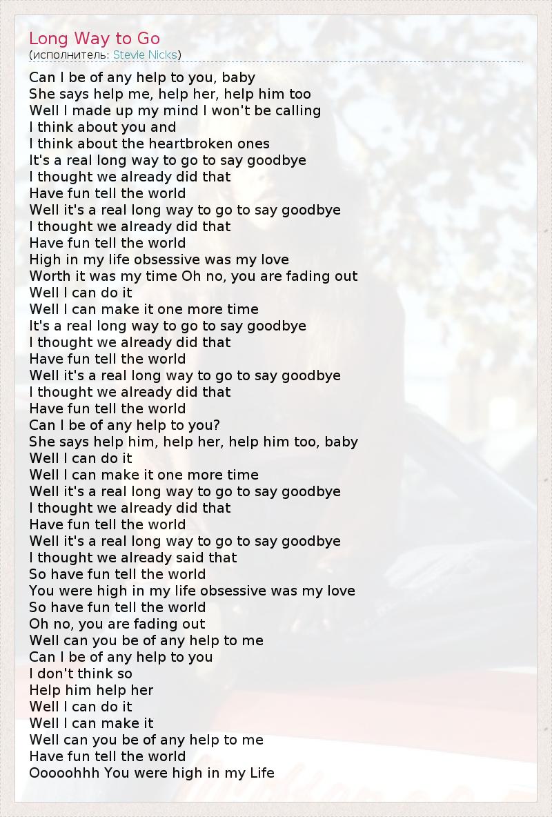 А как ты думаешь, о чем песня "Long Way to Go" ?