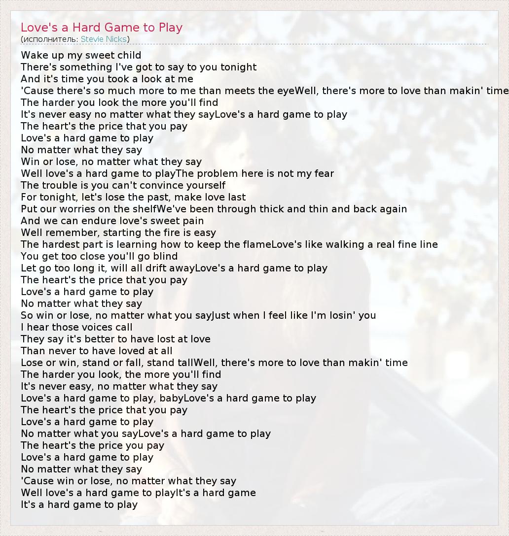 А как ты думаешь, о чем песня "Love's a Hard Game to Play" ?