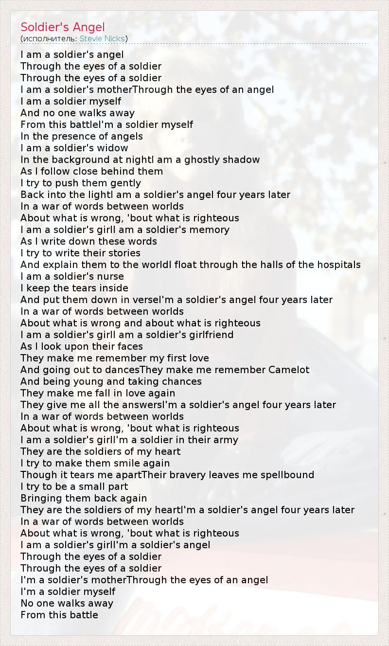 А как ты думаешь, о чем песня "Soldier's Angel" ?