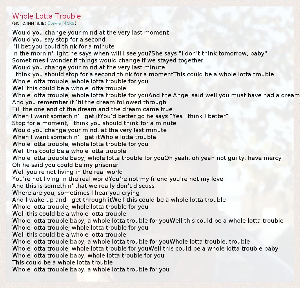А как ты думаешь, о чем песня "Whole Lotta Trouble" ?