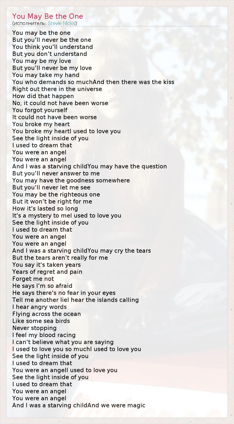 А как ты думаешь, о чем песня "You May Be the One" ?