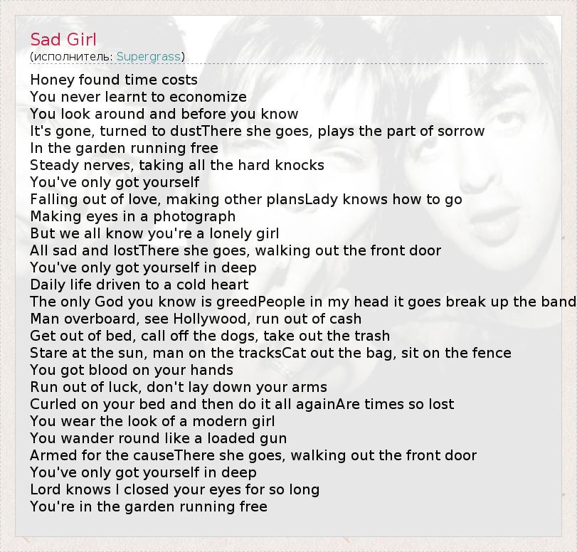 А как ты думаешь, о чем песня "Sad Girl" ?