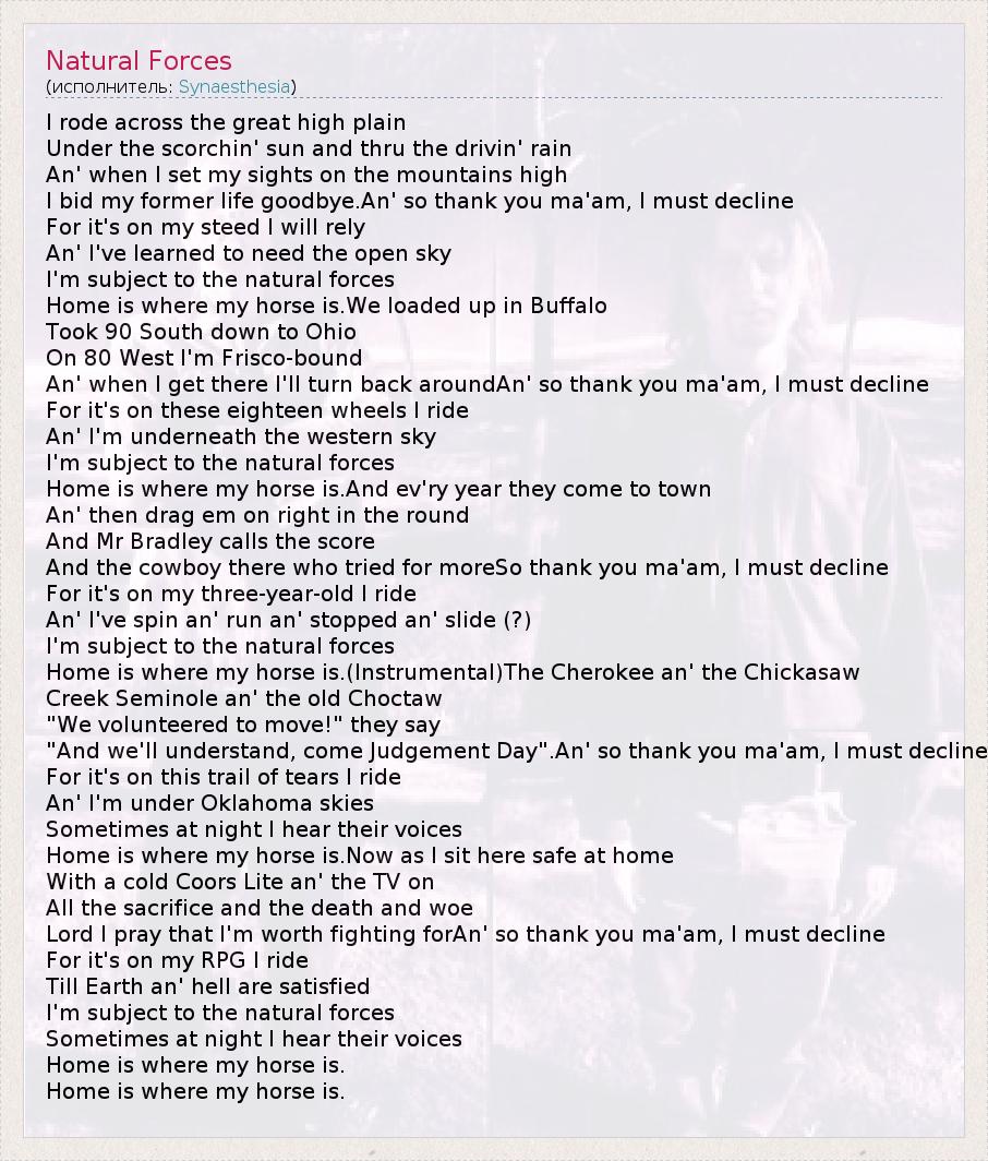 А как ты думаешь, о чем песня "Natural Forces" ?