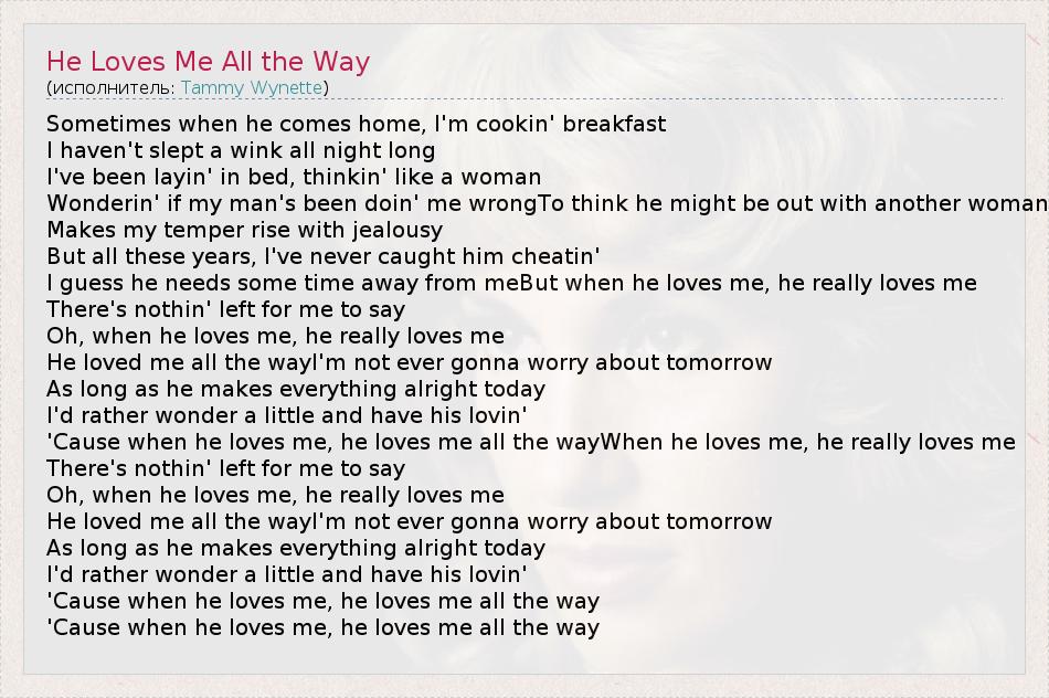 'Cause when he loves me, he loves me all the wayWhen he loves me, he really loves me