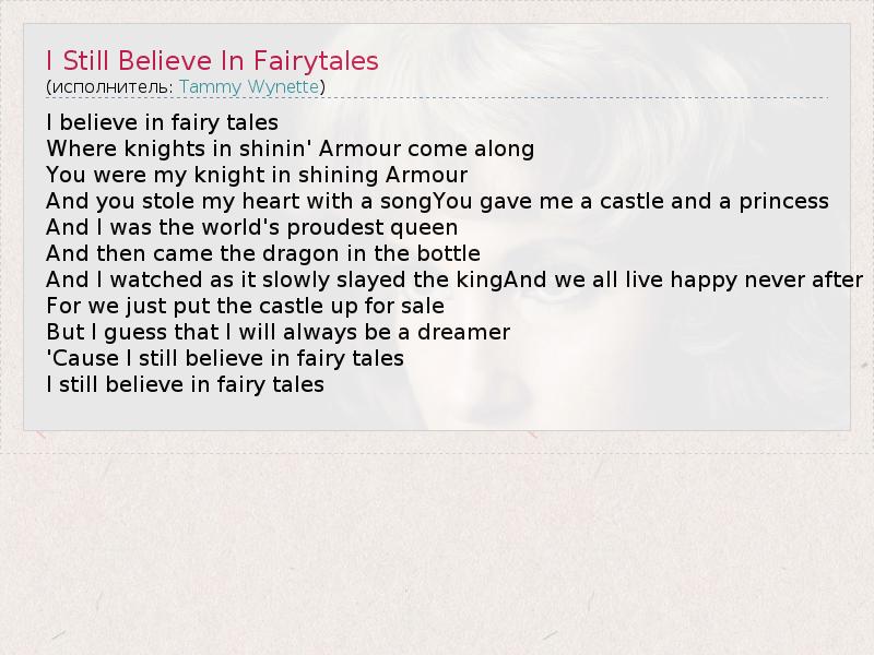А как ты думаешь, о чем песня "I Still Believe In Fairytales" ?