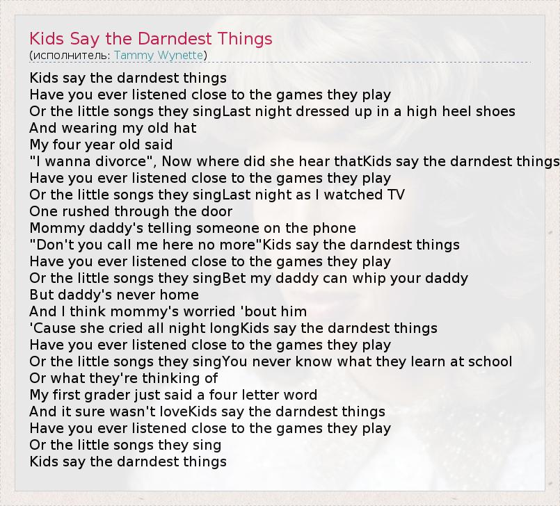 А как ты думаешь, о чем песня "Kids Say the Darndest Things" ?