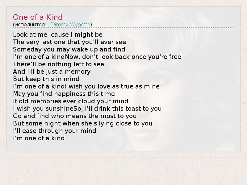 А как ты думаешь, о чем песня "One of a Kind" ?