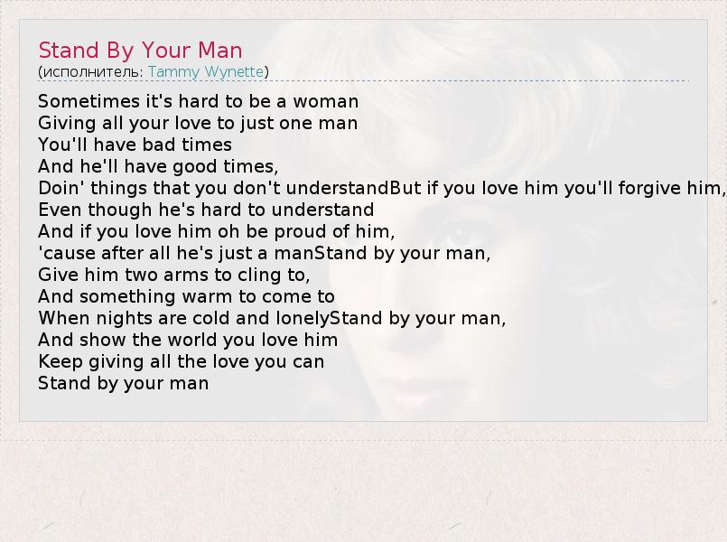 А как ты думаешь, о чем песня "Stand By Your Man" ?