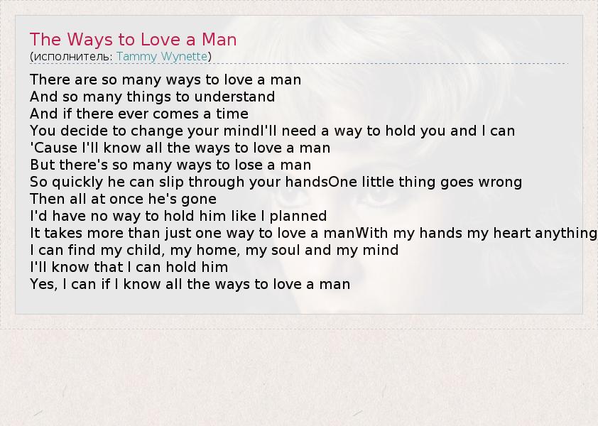 А как ты думаешь, о чем песня "The Ways to Love a Man" ?