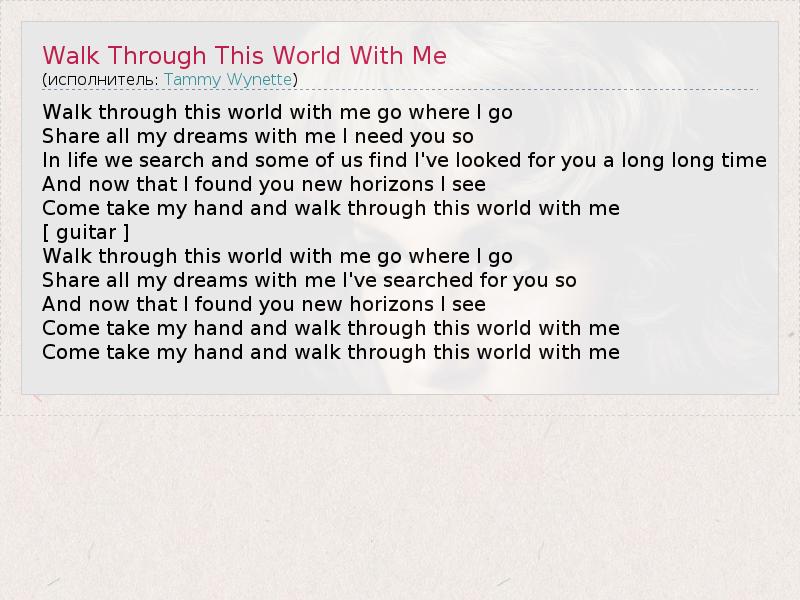 А как ты думаешь, о чем песня "Walk Through This World With Me" ?