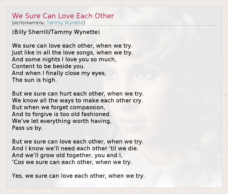 ГлавнаяИсполнителиTammy WynetteWe Sure Can Love Each Other