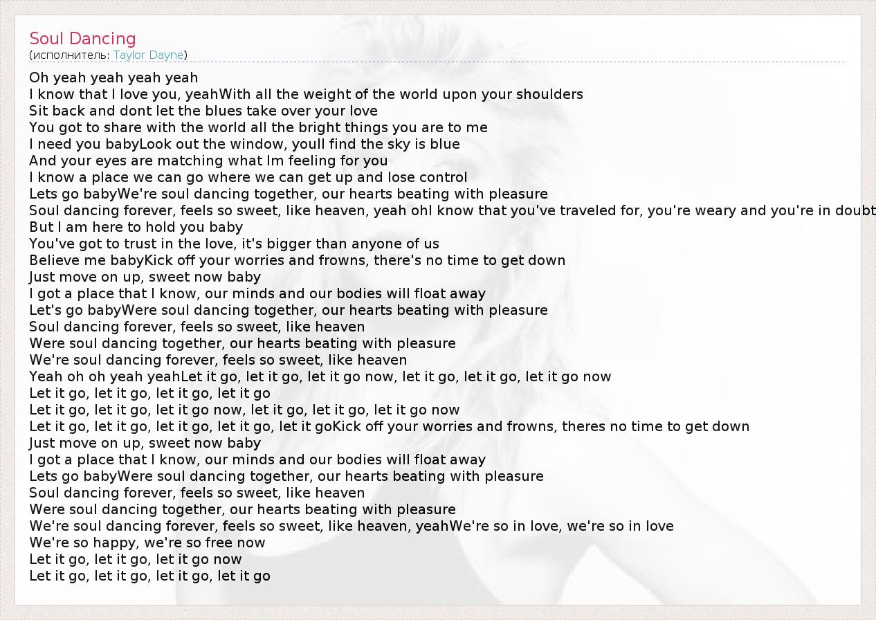 А как ты думаешь, о чем песня "Soul Dancing" ?