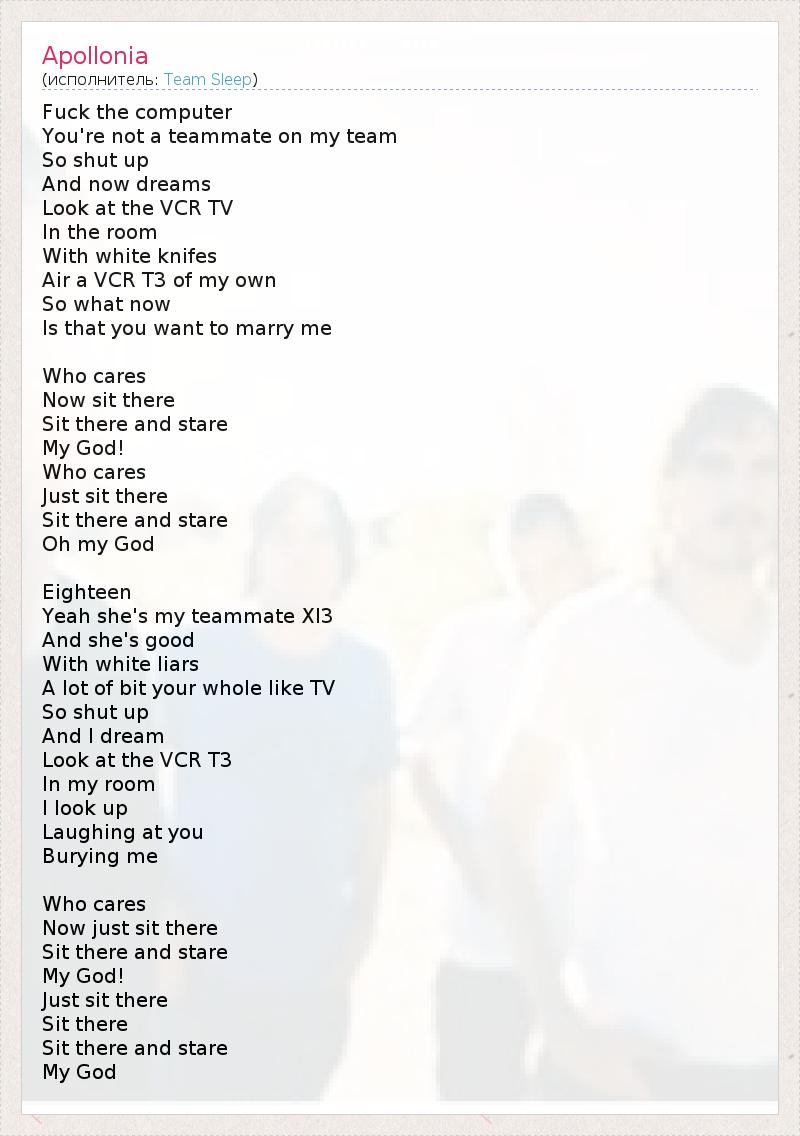 А как ты думаешь, о чем песня "Apollonia" ?