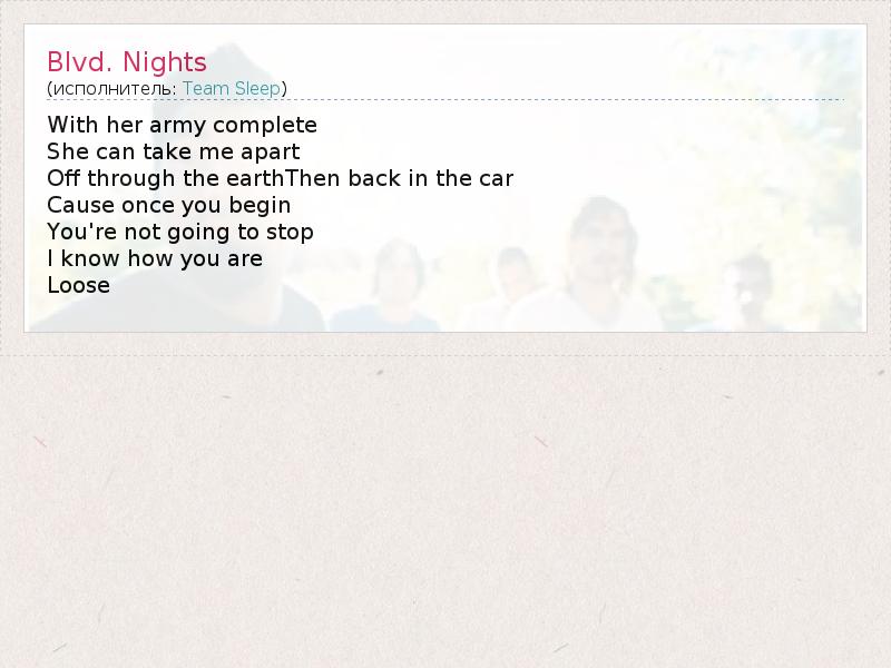 А как ты думаешь, о чем песня "Blvd. Nights" ?