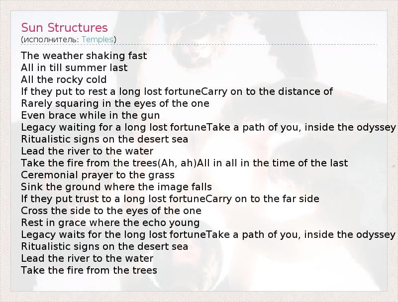 А как ты думаешь, о чем песня "Sun Structures" ?