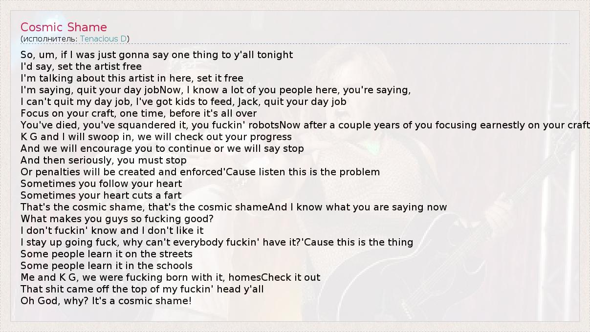 А как ты думаешь, о чем песня "Cosmic Shame" ?