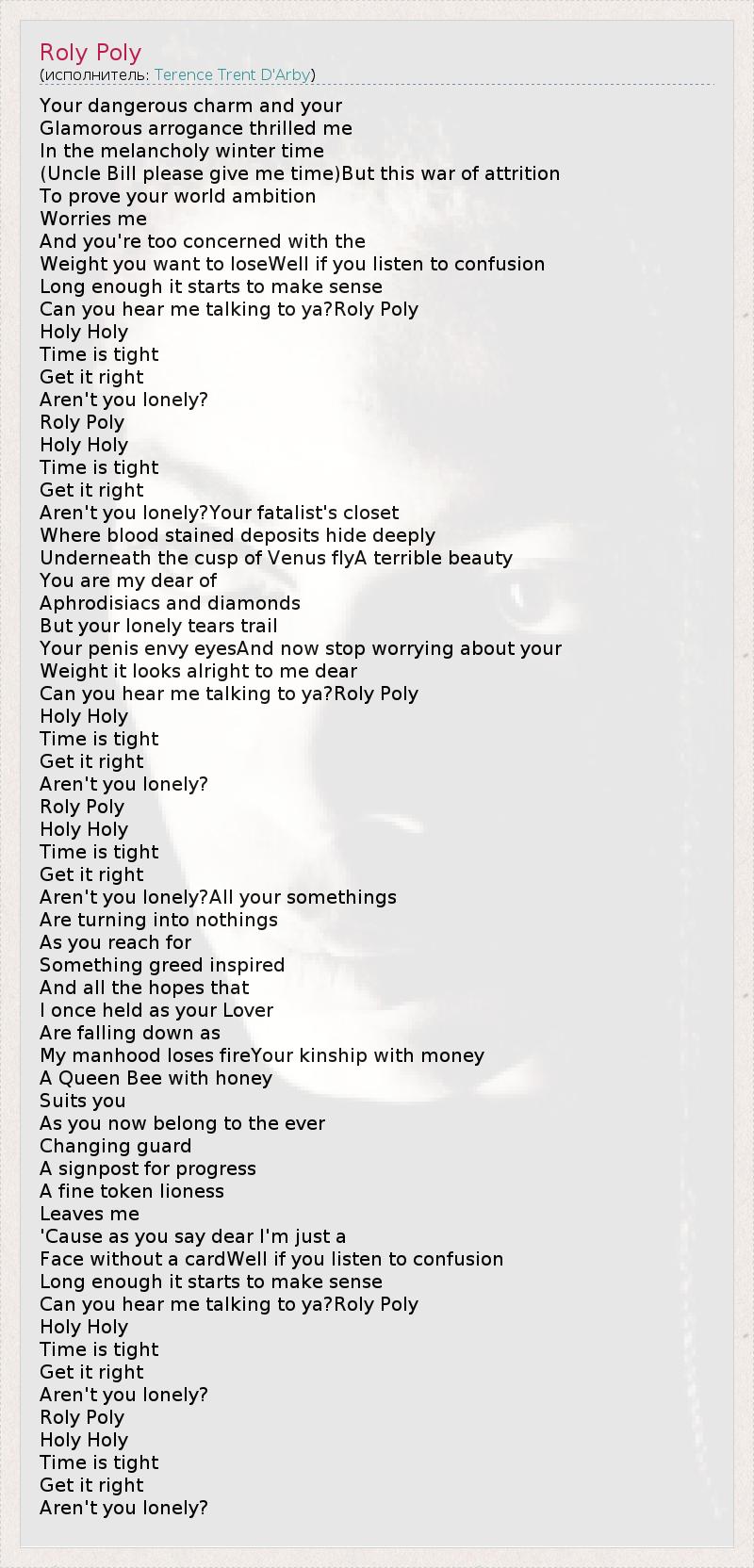 А как ты думаешь, о чем песня "Roly Poly" ?
